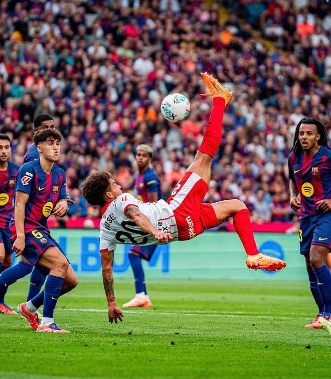 雷速体育10月19日讯 本轮西甲,维特塞尔在对巴萨的比赛中打入漂亮的倒钩进球,一度将比分追平,但最终赫罗纳还是1-2输给了巴萨。